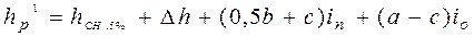 ∆Y = i п (b + c) + i o (a – c) = 0,02 (3,0 + 0,5) + 0,04 (2,0 – 0,5) = 0,13 м;