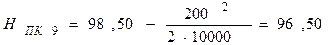 Нк12 = Нп12 – hк - ∆У = 85,63 – 1,00 –0,13 = 84,50