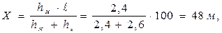На участках перехода насыпи в выемку определяют положение нулевых точек (рабочие отметки, в которых равны нулю), вычисляя расстояние Х: