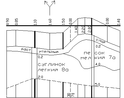 Положение нулевой точки показывают пунктиром от проектной линии до верха геологического профиля и от низа геологического профиля до графы 1 (табл. 3.2). На пунктире ниже геологического профиля указывают расстояния до соседних