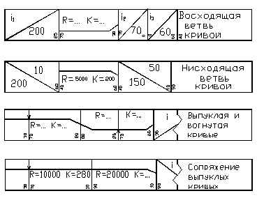 Рис. 3.14. Обозначение вертикальных кривых и прямы