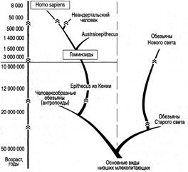 Семейство гоминид, к которому относится человек, возникло в экваториальной части Земли, а род Человек – в восточной части Африки и в Южной Азии. В ранние эпохи на Земле существовали несколько видов гомид, относящихся к двум подсемействам: австралопитеки и просто люди, из которых сохранился лишь один вид – Homo sapiens –человек разумный. Отголосками того, что еще недавно на Земле жили одновременно неандертальцы и люди, являются сохранившиеся легенды о «снежном» Человеке. Многие ученые считают, что Homo sapiens подразделяется на два подвида – неандертальца и современного человека (рис. 5.1).