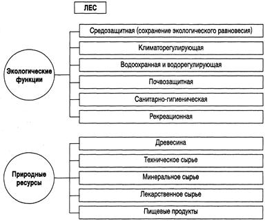 Леса важная составная часть окружающей природной среды. Как экологическая система лес выполняет различные функции и одновременно является незаменимым природным ресурсом (рис. 7.7).