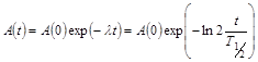 Активность радионуклида уменьшается во времени по экспоненциальному закону радиоактивного распада: