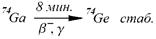 Однако, если дочерний продукт является стабильным, как, например, на рис.9.3, представляющим схему, распада материнского радионуклида 74Ga в стабильный 74Ge, то накопление последнего будет также описываться системой уравнений (9.4), в которой второе слагаемое в правой части второго уравнения будет равно нулю, поскольку в этом случае можно принять T ½ = ∞, а λ 2 = 0. на рис.9.4 приведена схема образования стабильного нуклида 72Ge при распаде материнского 72Zn и дочернего 72Ga, распад которых также описывается системой уравнений (9.4), а накопление стабильного 72Ge учитывается дополнительным уравнением dN 3/ dt = λ 2 N 2. можно также рассмотреть распад радиоактивных ядер N 2 в дочерние N 3, претерпевающие радиоактивный распад при условии N 3(0) = 0. Для этого систему уравнений (9.4) следует дополнить уравнением