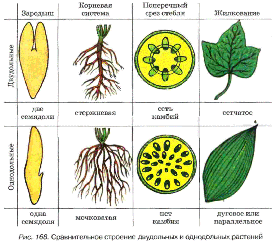Самый главный признак различия однодольных и двудольных растений – наличие 1 или 2 семядоль.