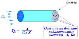 Стандартным методом оценки объемной актив-ности газоаэрозольной радиоактивной примеси яв-ляется известный аспирационный метод, используемый, в настоящее время, для анализа загрязнения воздушной среды радиоактивными аэрозолями. Суть метода (см. рис.10.6) состоит в естественном или принудительном прохождении воздушного потока, загрязненного газоаэрозольной радиоактивной примесью, через патрубок прямоугольного или круглого сечения площадью S, в конце которого располагается движущийся или фиксированный фильтр, на кото-ром осаждаются радиоактивные аэрозоли. При измеренной скорости воздушного потока U 0, проходящего через патрубок, заданном времени его прохождения t, а также измерении общей активности фильтра A, возникающей на нем за счет осевшей газоаэрозольной радиоактивной примеси, определяют объемную активность последней. На основе этого метода разработан ряд приборов в том числе и широко известный анализатор “Калина”, используемый, как внутри помещений, так и в венттрубах АЭС, для получения и обработки радиоактивных газоаэро-зольных проб, среди которых выделяют короткоживущие (КЖН), долгоживущие (ДЖН) нуклиды аэрозолей и инертные радиоактивные газы (ИРГ). Основным недостатком этого прибора является отсутствие возможности регистрации объемной активности ИРГ, в силу специфических их физико-химических свойств, наличие “мертвого” времени, составляющего порядка 15 мин., необходимого для обработки результатов измерений активности аэрозолей и йодов, что в принципе не позволяет использовать этот прибор в режиме on-line. Кроме того, наличие механических частей в виде лентопротяжного механизма для сорбирующей аэрозоли ткани, существенно снижает надежность прибора в целом.