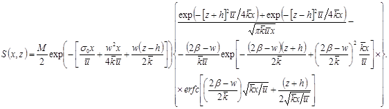 Воспользуемся тем, что указанные уравнения являются линейными и величина мощности выброса входит в уравнение линейно. Это значит, что в полученном решении величина M войдет простым сомножителем, что убеждает нас в приведенном, для простоты, аналитическом решении стационарного уравнения (13.19) при v = l = 0 и постоянных