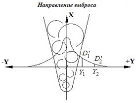 представляет собой фоновую мощность дозы, создаваемую фотонным излучением естественного или техногенного происхождения, а измерение мощности дозы в условиях аварийного выброса осуществляется в двух точках на расстояниях Y 1 и Y 2, (Y 1 < Y 2), отстоящих от оси выброса X, представляющих соответственно значения D ´ 1 (Y 1) и D ´2(Y 2), удовлетворяющих неравенству D ´1 (Y 1) > D ´2(Y 2) (рис.13.8).