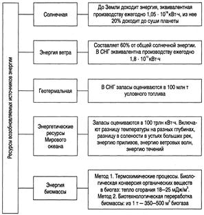 Основные преимущества возобновляемых источников энергии хорошо известны: практическая неисчерпаемость запасов (рис.14.2) и относительная экологическая безвредность, в связи с отсутствием побочных эффектов, загрязняющих природную среду. Сдерживает их развитие недостаточный на сегодняшний день технический уровень индустриальных методов использования.