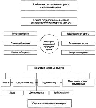 В России функционирует разветвленная общегосударственная служба наблюдения на всех уровнях мониторинга – локальном, региональном и глобальном. На многочисленных станциях, стационарных постах, в химических лабораториях, на самолетах, вертолетах и космических аппаратах наблюдают за загрязнением атмосферы, вод, почв, донных отложений, околоземного пространства, организуют «слежение» за состоянием земель, минерально-сырьевых ресурсов недр, сохранностью животного и растительного мира и т. д.