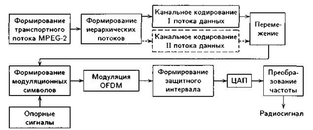 Рис. 7.4. Алгоритм формирования радиосигнала в ТВ системе DVB-T