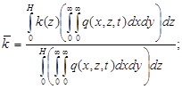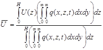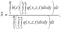 - усредненные по пограничному слою с весом q (x, z, t) значения энергии турбулентных пульсаций b (z), коэффициента турбулентной диффузии k (z) и скорости ветра