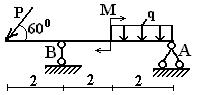 Задание: Определить реакции опор балки. Силой тяжести балки пренебречь.