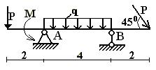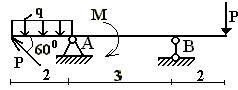 | № варианта | № рисунка | Р,кН | М, кНм | q, кН/м |