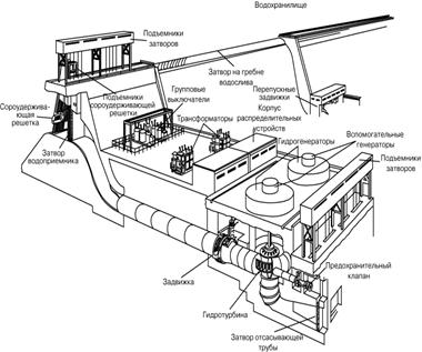 Для устройства простейшей приливной электростанции (ПЭС) нужен бассейн – перекрытый плотиной залив или устье реки. В плотине имеются водопропускные отверстия и установлены турбины. Во время прилива вода поступает в бассейн. Когда уровни воды в бассейне и море сравняются, затворы водопропускных отверстий закрываются. С наступлением отлива уровень воды в море понижается, и, когда напор становится достаточным, турбины и соединенные с ним электрогенераторы начинают работать, а вода из бассейна постепенно уходит. Считается экономически целесообразным строительство ПЭС в районах с приливными колебаниями уровня моря не менее 4 м. Проектная мощность ПЭС зависит от характера прилива в районе строительства станции, от объема и площади приливного бассейна, от числа турбин, установленных в теле плотины.