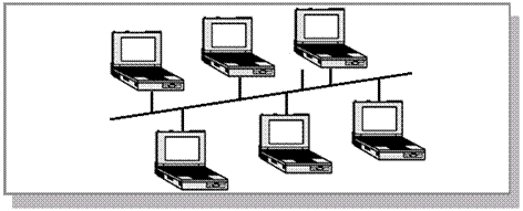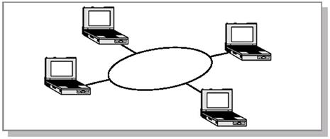 Все компьютеры и сетевые устройства подсоединены к одному проводу и фактически напрямую соединены между собой. Топология "кольцо" (ring) показана на рис. 5.