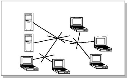Все компьютеры и сетевые устройства подключены к одному центральному устройству. Топология "расширенная звезда" (extended star) показана на рис. 7.