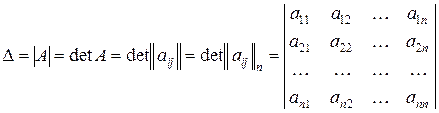называется транспонированным определителем и обозначается одним из следующих символов: