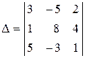Из полученного равенства видно, что каждое слагаемое в выражении (2.2) является произведением трёх элементов определителя, взятых ровно по одному из каждой строки и каждого столбца.