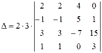 Решение. Вынесем за знак определителя общий множитель 2 из первого столбца, а из второго столбца вынесем множитель 3: