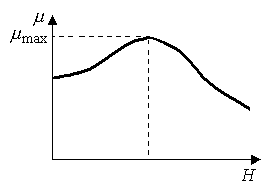 | Рис.5.26. Зависимость магнитной проницаемости от напряженности поля |