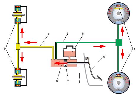 Схема гидравлической тормозной системы