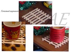 Подставка будет из палочек (поскольку вязать я не умею, а уж вырезать по дереву тем более)
