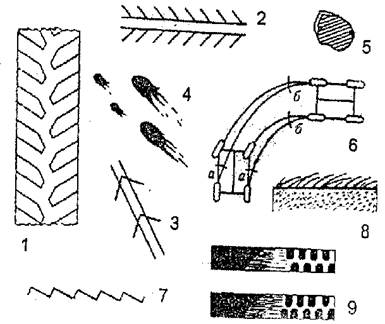 4)капли жидкости, упавшие с транспортного средства; 5)расположение зазора около камня,