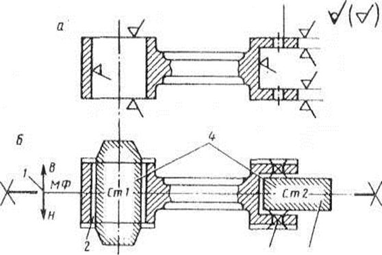 2,3 - стержневые знаки; 4 - формовочные уклоны;
