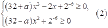 Система неравенств (2) имеет решения при любых значениях х тогда и только тогда, когда 1) в первом неравенстве коэффициент при