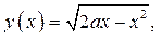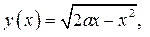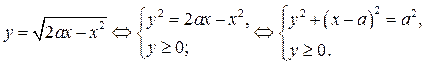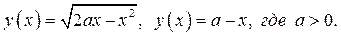 является полуокружности, расположенная над осью абсцисс, с центром в точке (а; 0) и радиусом, равным а. На координатной плоскости х0у построим графики функций