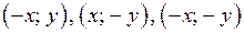 . График уравнения (1) получается симметричным отображением относительно осей координат графика уравнения (2) (каждая точка