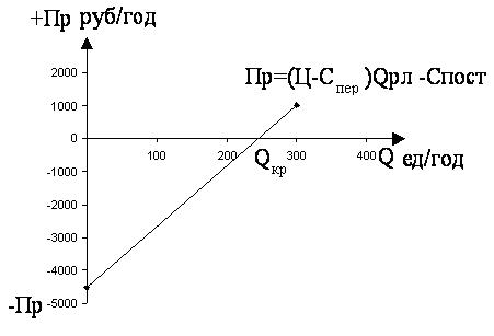 Из графика следует, что изменяя цену, переменные и постоянные затраты, можно смещать точку безубыточности и получить желаемое ее значение.