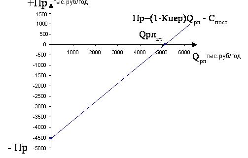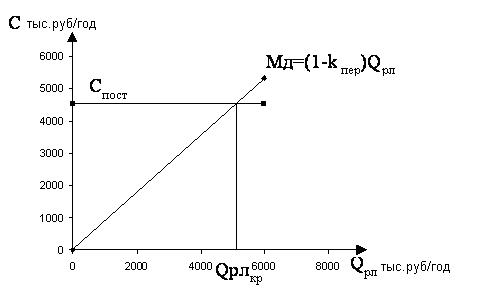 Получаемое по (ф. 66) выражение представляет собой точку безубыточности в стоимостной форме, т.е. минимальную выручку от реализации, при превышении которой предприятие начнет получать прибыль.