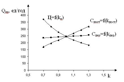 За точку отсчета (k = 1,0) принимаются те значения цены, переменных и постоянных затрат, которые были получены ранее.