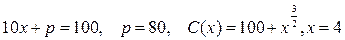 2. Найти предельную выручку и прибыль, если заданы уравнения спроса, значение цены на некоторую продукцию и функция издержек C(x) и точка x: