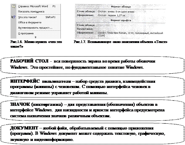 Во многих окнах диалога предусмотрен способ получения справки. Достаточно нажать расположенную в строке команд (правый верхний угол) окна кнопку?, а затем щелкнуть интересующую команду в окне (рис. 1.6). При этом на экране появится всплывающее окно с текстом пояснения (рис. 1.7).