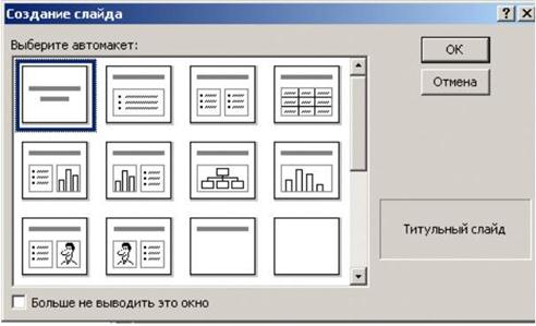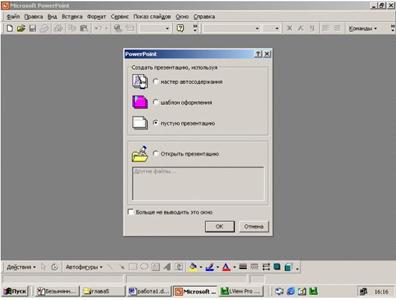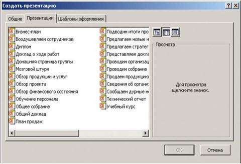 Рис. 1. Диалоговое окно выбора способа создания презентации