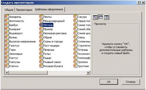 Рис.2. Диалоговое окно выбора шаблона презентации