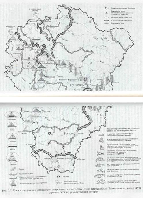 С момента славянского расселения в начале II тысячелетия сами реки и ландшафты речных долин подвергаются заметным изменениям. Исторически вся система славянского расселения была тесно связана с реками: наиболее старыми и укорененными в лан-дшафте были прибрежные поселения, наследовавшие древнесла-вянские либо финно-угорские селища (рис. 7.6).