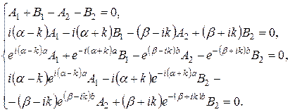Условием существования нетривиального решения однородной системы (4.22) является равенство нулю ее определителя. Выписывая и раскрывая определитель системы, получаем