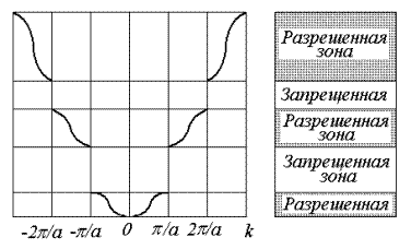 | Рис.4.4. Закон дисперсии для электрона в модели Кронига - Пенни |