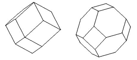 | Рис. 4.5. Первые зоны Бриллюэна для объемноцентрированной (а) и гранецентрированной (б) кубической решетки |