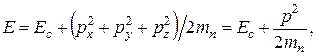 – энергия, соответствующая дну зоны проводимости. Изоэнергетическими поверхностями в этом случае являются сферы (рис.4.16).