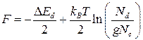 Из (4.111) видно, что уровень Ферми при абсолютном нуле температуры проходит посередине между дном зоны проводимости и примесным уровнем. При достаточно низких температурах (пока