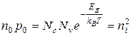 В полупроводнике равновесная концентрация электронов в зоне проводимости определяется выражением (4.99), а дырок в валентной зоне – (4.101). Перемножив эти выражения, получим