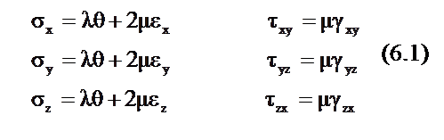 Для отыскания этих неизвестных фикция мы располагаем тремя дифференциальными уравнениями равновесия (1.1), шестью формулами Коши (3.1) и шестью формулами закона Гука (5.1) или (6.1). Таким образом, с математической точки зрения задача может быть решена интегрированием 15 уравнений при удовлетворении условий на поверхности (2.1).