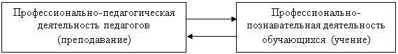Процесс профессионального обучения включает в себя два взаимосвязанных компонента: профессионально-педагогическую деятельность педагогов и профессионально-познавательную деятельность обучающихся (схема 1).