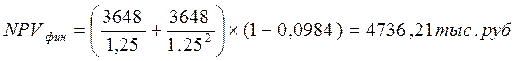 Определим величину чистой текущей стоимости будущих доходов (